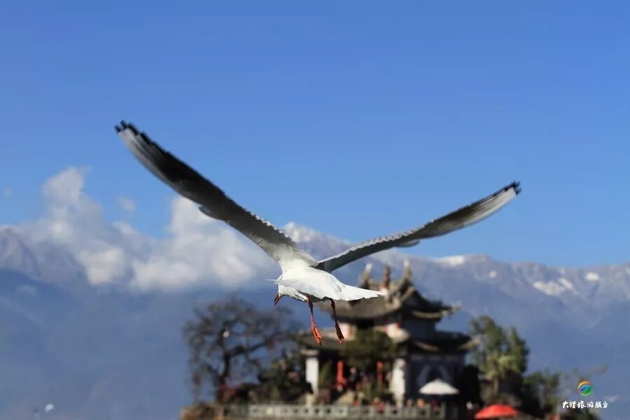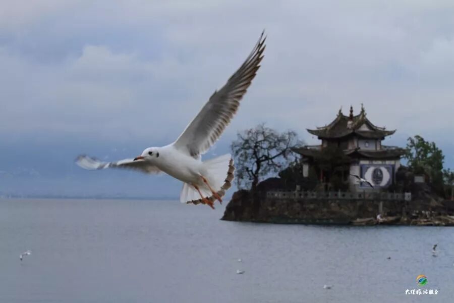 海鷗在洱海愉快的玩耍,悠然地鳴叫,自在地盤旋,只為守候洱海月影斑斕。